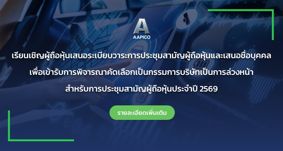โทร: (66)2-613-1504-8 อีเมล: ir@aapico.com